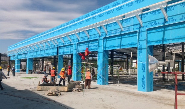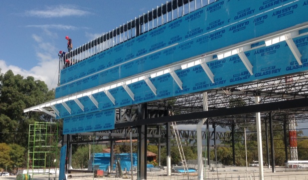 El GlassRey de Panel Rey es un panel para exterior compuesto por un núcleo de yeso incombustible especialmente tratado para ser resistente a la absorción de agua, está recubierto en ambas caras por superficie de fibra de vidrio que es resistente al crecimiento de hongos. El Panel Glass Rey de Panel Rey tiene un desempeño garantizado de hasta 12 meses expuesto a la intemperie contra degradación, delaminación y deterioro.