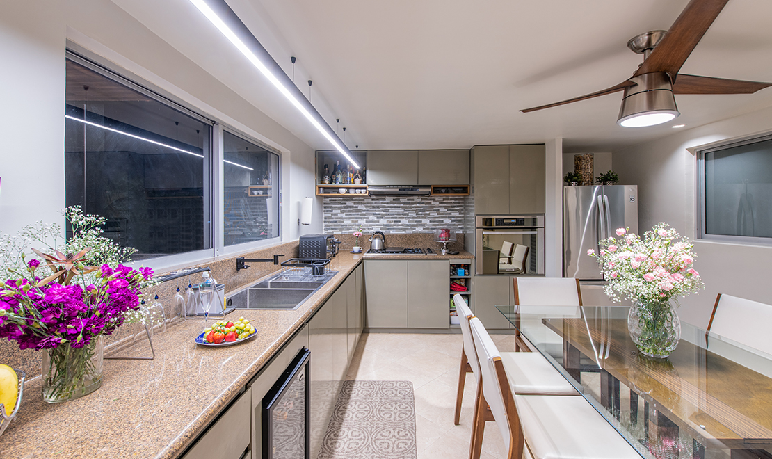 La construcción utiliza materiales de alta calidad, incluyendo paneles de yeso Light Rey, compuesto Ready Mix Estándar Plus y perfiles PerfiRey, asegurando durabilidad y un acabado elegante.