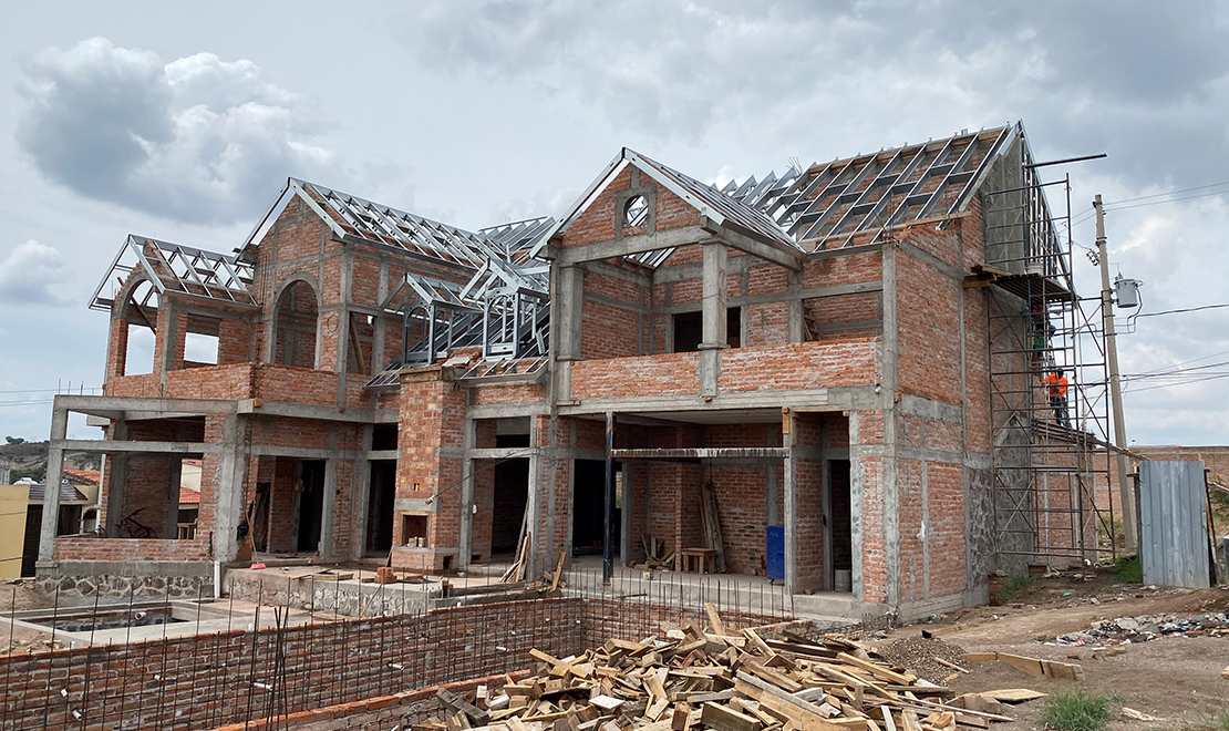 El uso del base coat Protekto Plus y el compuesto Ready Mix Estándar Plus aseguran acabados impecables y durabilidad en el tiempo. Las fotografías, capturadas por Panel Rey, destacan la elegancia y la integración de la casa con su entorno, reflejando una fusión perfecta entre modernidad y comodidad.